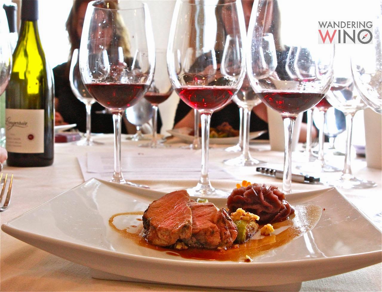 The final course of Ginger Snap Lamb Rack was served with three Syrahs, from Brander, Demetria ($34), and Margerum ($25), all vintage 2012. While all lovely, the Demetria, with its slight hint of mint, was the perfect pairing with the lamb.
