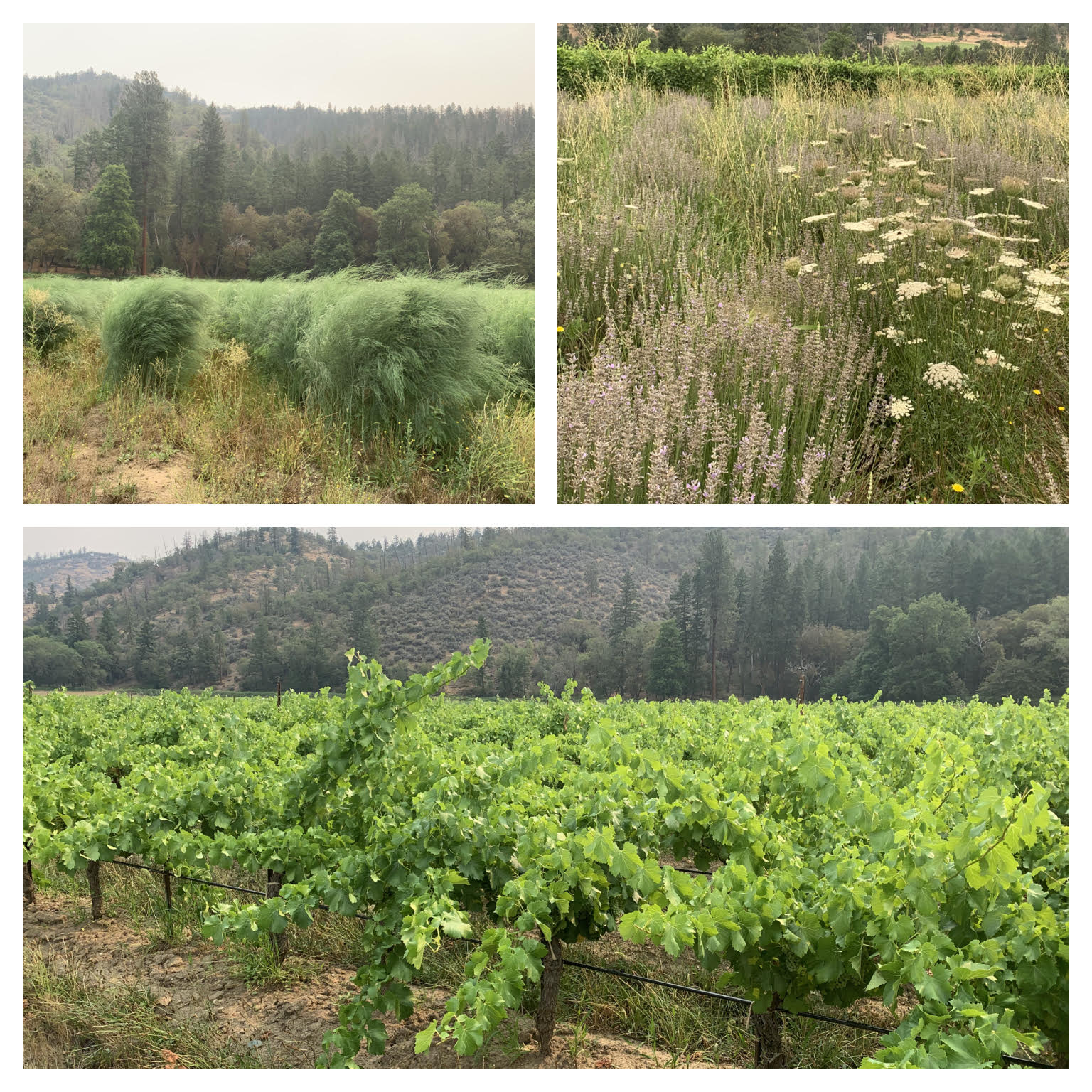 In the vineyard, we saw “happy” vines (see photo below), or “Dr. Seuss vines,” as Banks describes them. This is due to the head training favored by the vineyard, which they believe makes the vines self-sufficient as their roots need to go deeper to “ground” themselves. Thompson and team use natural sissal twine to help stabilize the vines when winds come in, which occurs daily late in the afternoon in Applegate Valley. These winds are brought in on a natural funnel off the ocean, which is about a four-hour drive away. These winds were especially helpful this summer to help blow out the fire smoke that was invading all of Southern Oregon in August, due to the horrific wildfires to the east of Cowhorn.